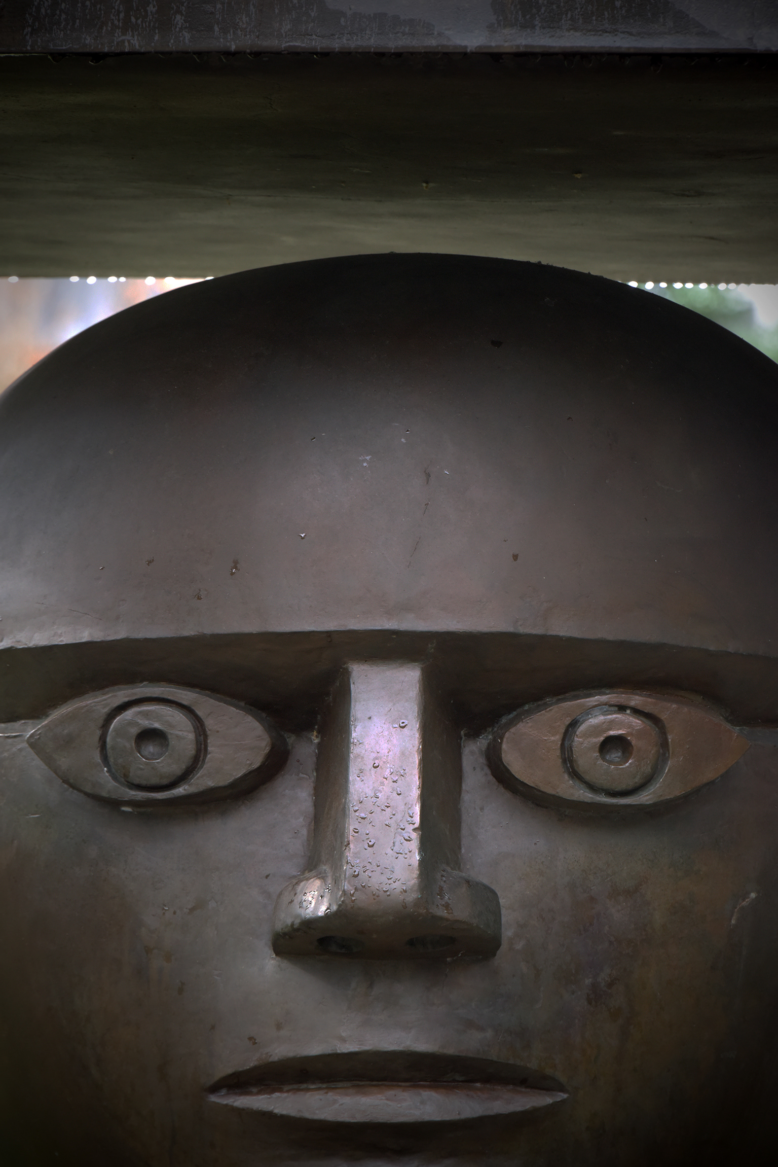 Im Eingangsbereich empfängt die Skulptur Kopf im Gehäuse des Zürcher Bildhauers